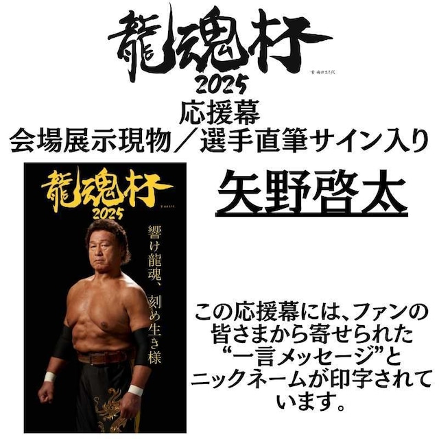 矢野啓太『龍魂杯2025 応援幕』(会場展示現物/直筆サイン入り)