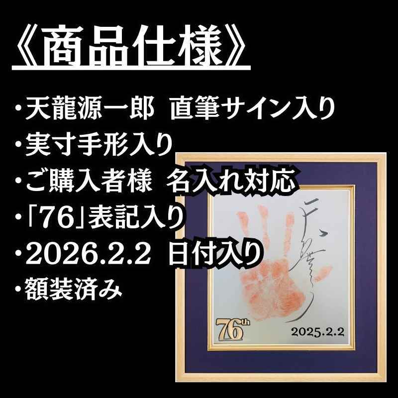 本商品は、毎年ご好評をいただいている天龍源一郎の誕生日記念企画として、2026年2月2日に76歳を迎える節目の日に制作される、特別な記念額装パネルです。